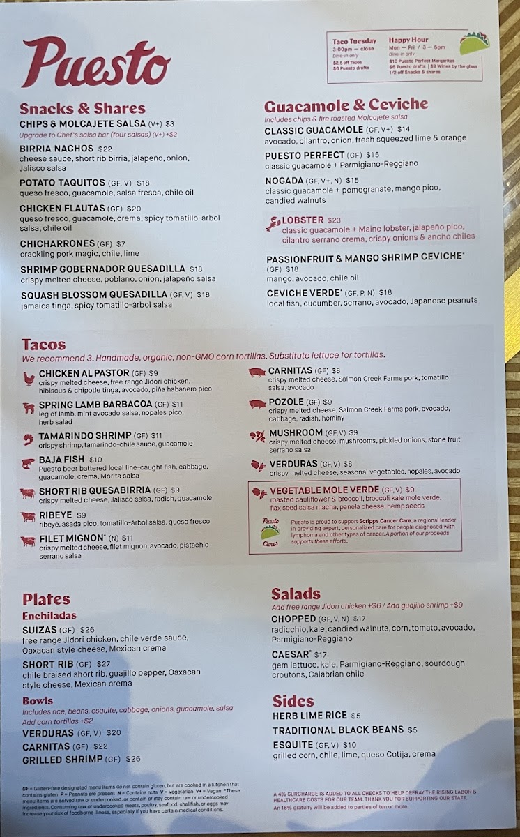 Welcome to Puesto Mission Valley, where vibrant flavors of Mexico come alive! Nestled in San Diego, this Mexican restaurant offers a delightful menu that showcases fresh and bold ingredients. Begin your dining experience with their refreshing Chopped Salad featuring radicchio, kale, and candied walnuts or indulge in the savory Jalapeño Caesar.