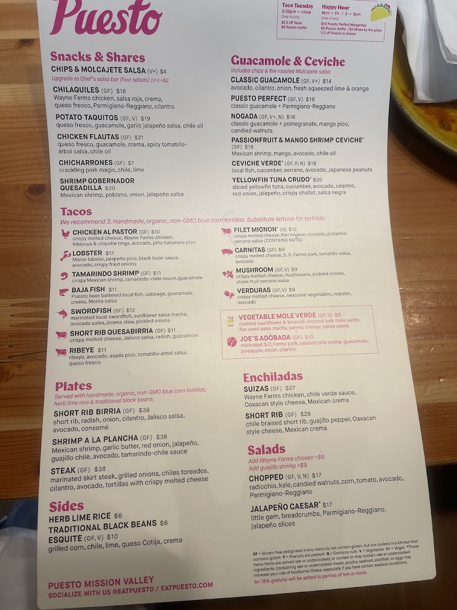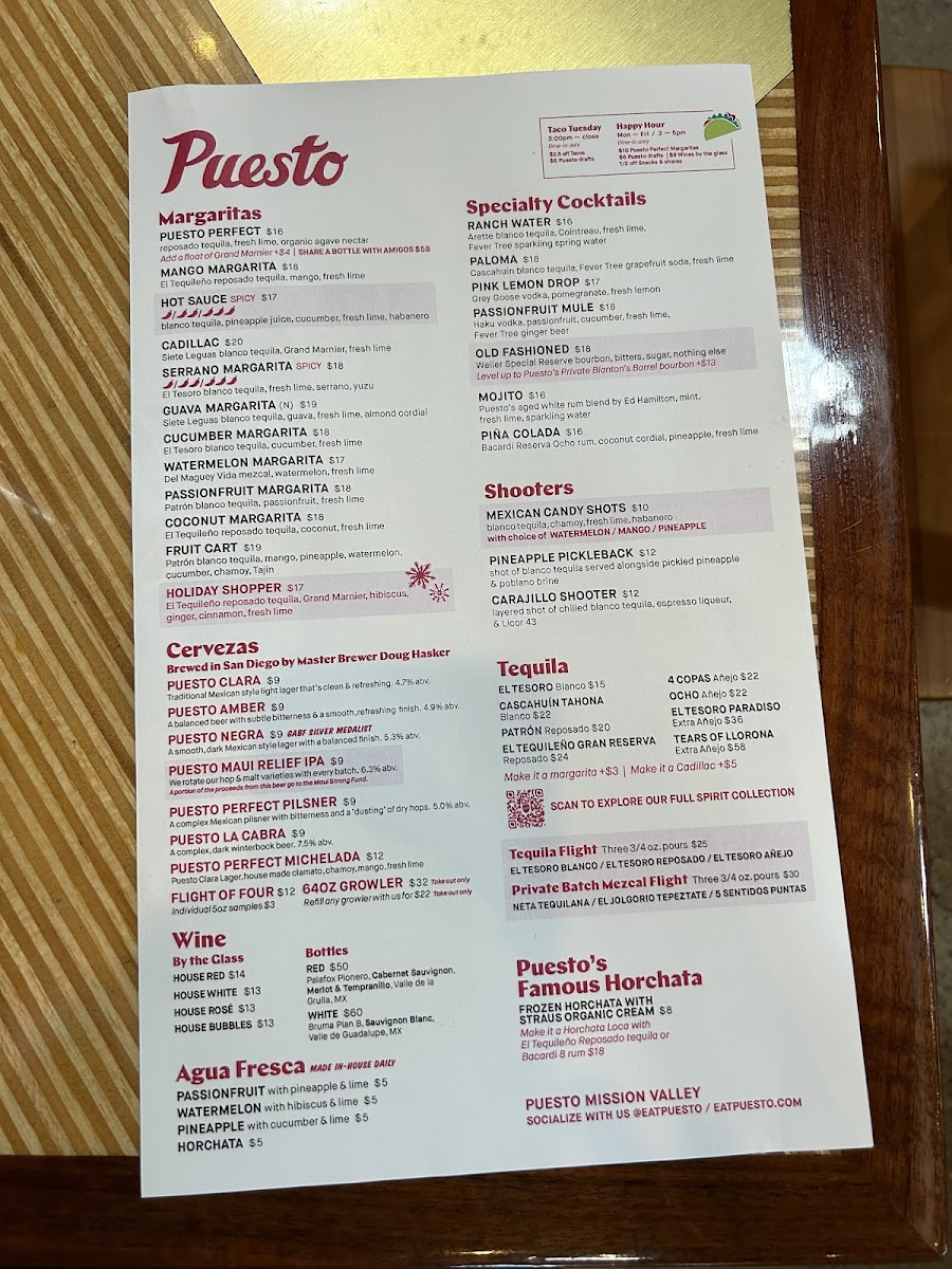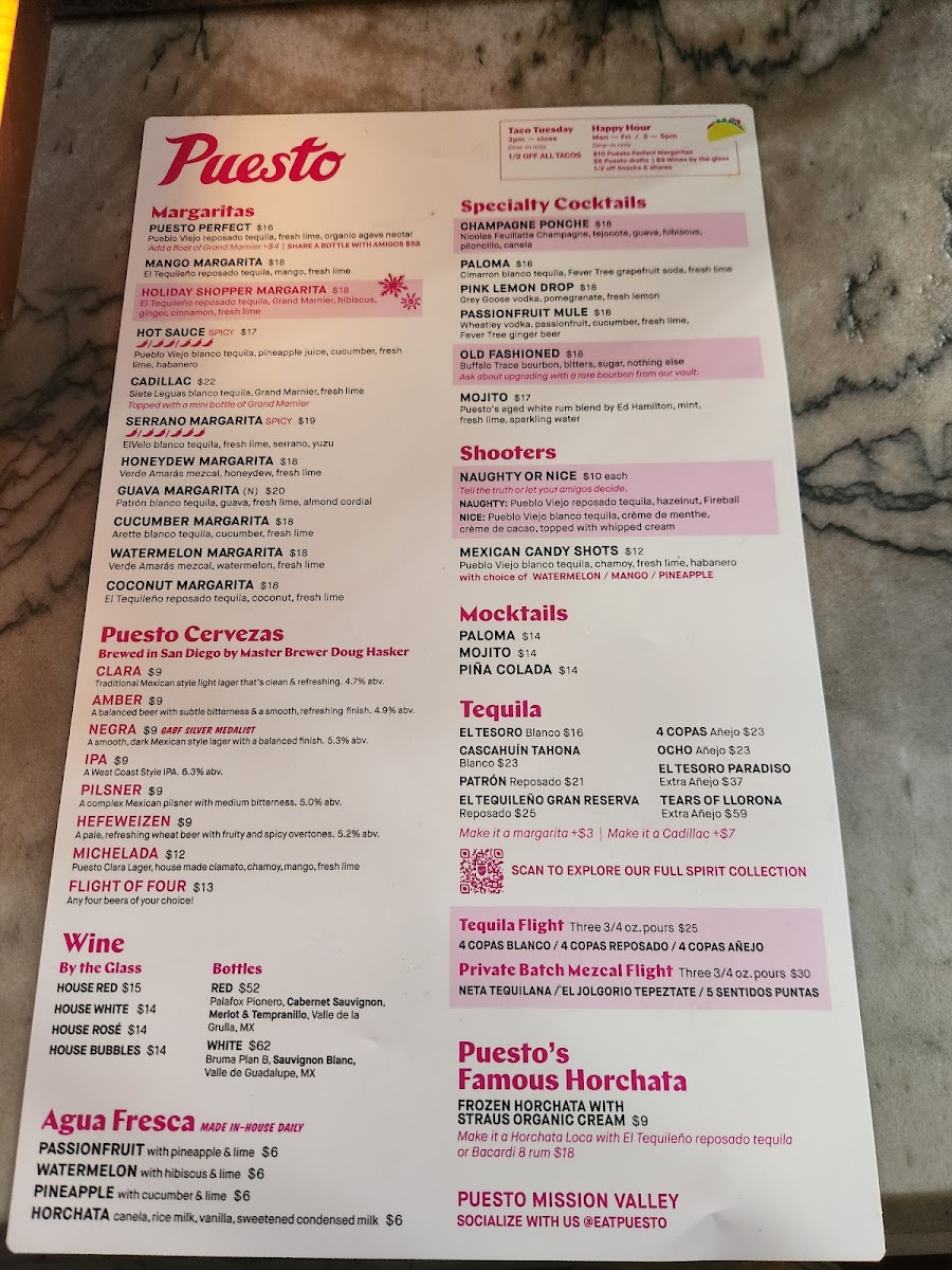 With a lively atmosphere and attentive service, Puesto Mission Valley is ideal for enjoying a memorable meal with friends or family!